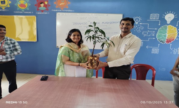 A guest lecture was delivered by Mr. Rohit Kadam on Dynamic Power Management in Embedded Systems. The session focused on energy optimization techniques in embedded devices. Students learned about improving system efficiency and performance. Real-world examples enhanced their understanding. The lecture provided valuable industry exposure.